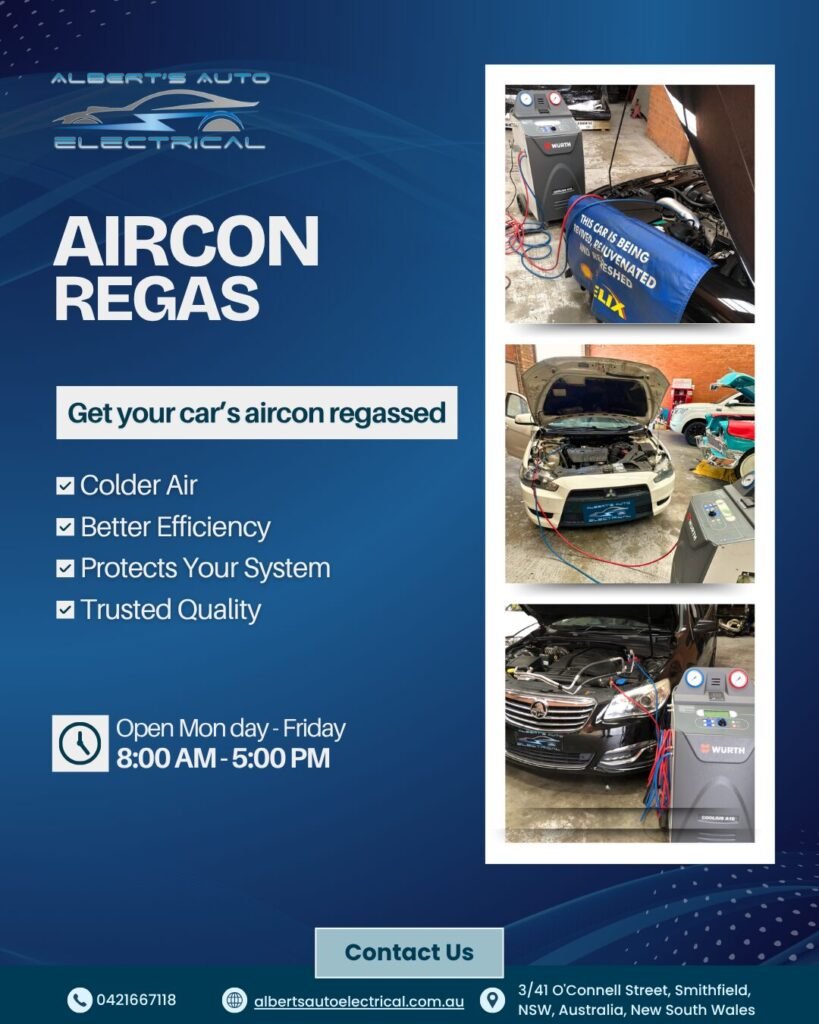 #AirconRegas#Wurth#AlbertsAutoElectrical#StayCool#SmithfieldMechanic#autoelectricalexperts#nsw