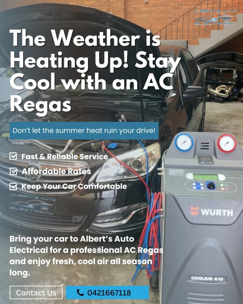 Don’t sweat it out this summer! At Albert’s Auto Electrical, we’ve got you covered with our fast, reliable, and affordable AC Regas service. Enjoy fresh, cool air every time you drive – no more stuffy rides or uncomfortable trips.